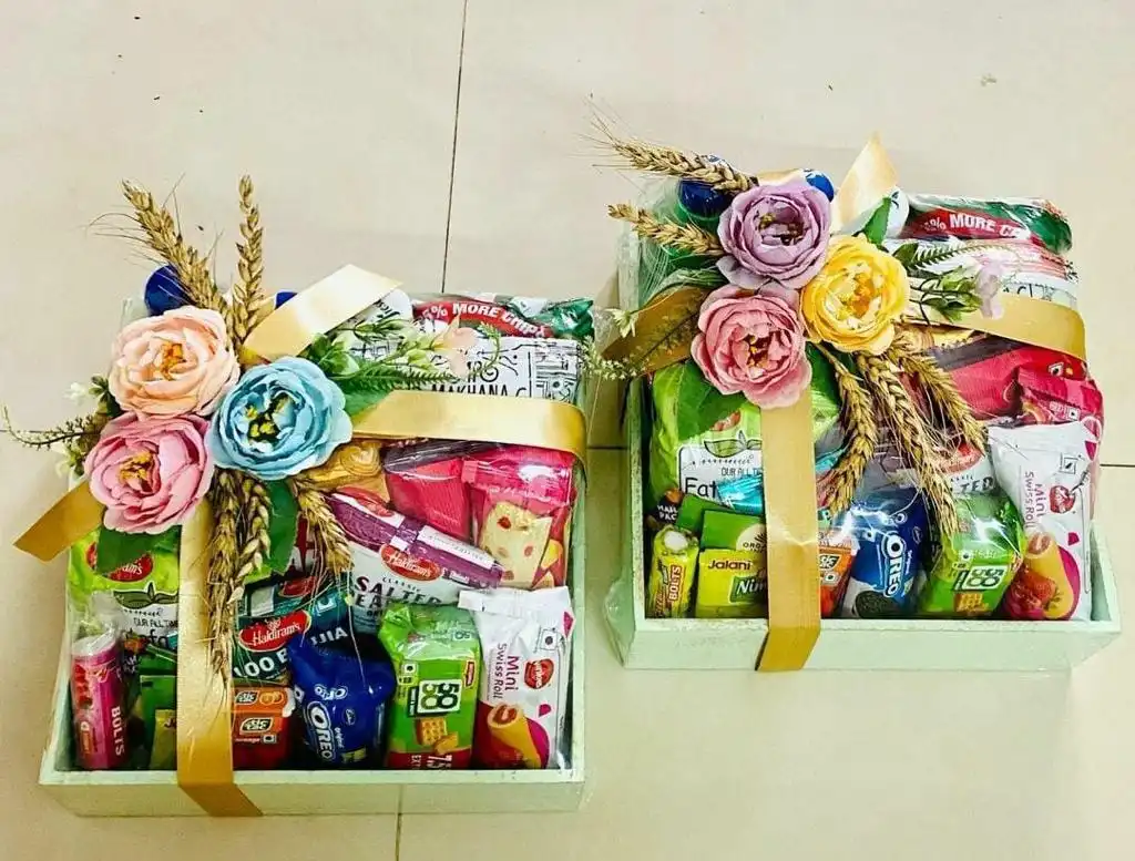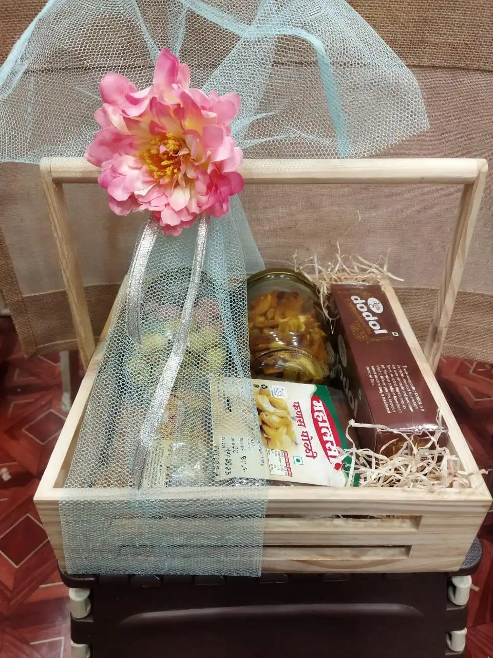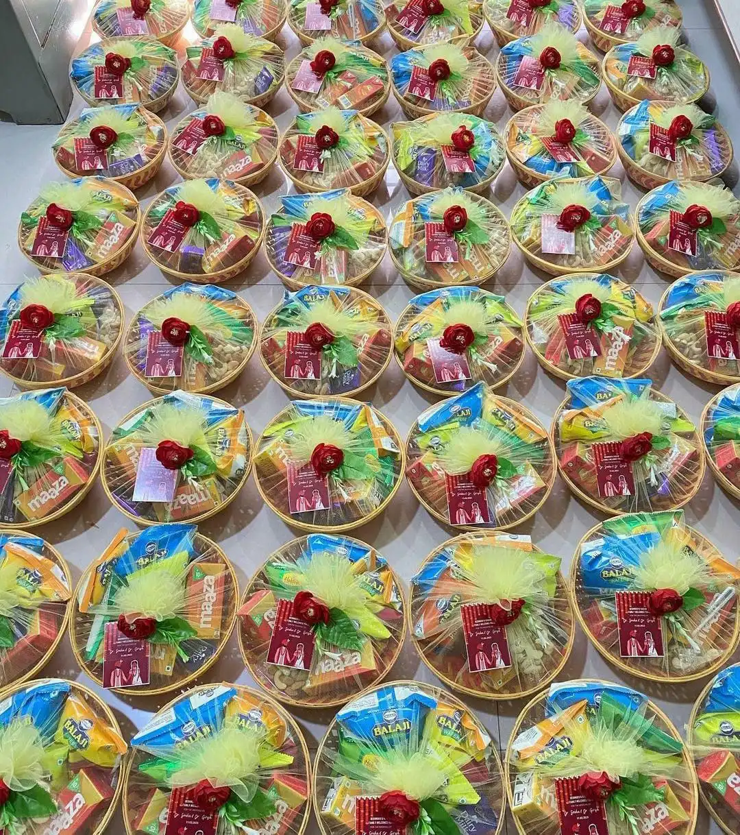 Get in touch with us to book our specially curated wedding room hampers. Prices start from ₹500 /- onwards.